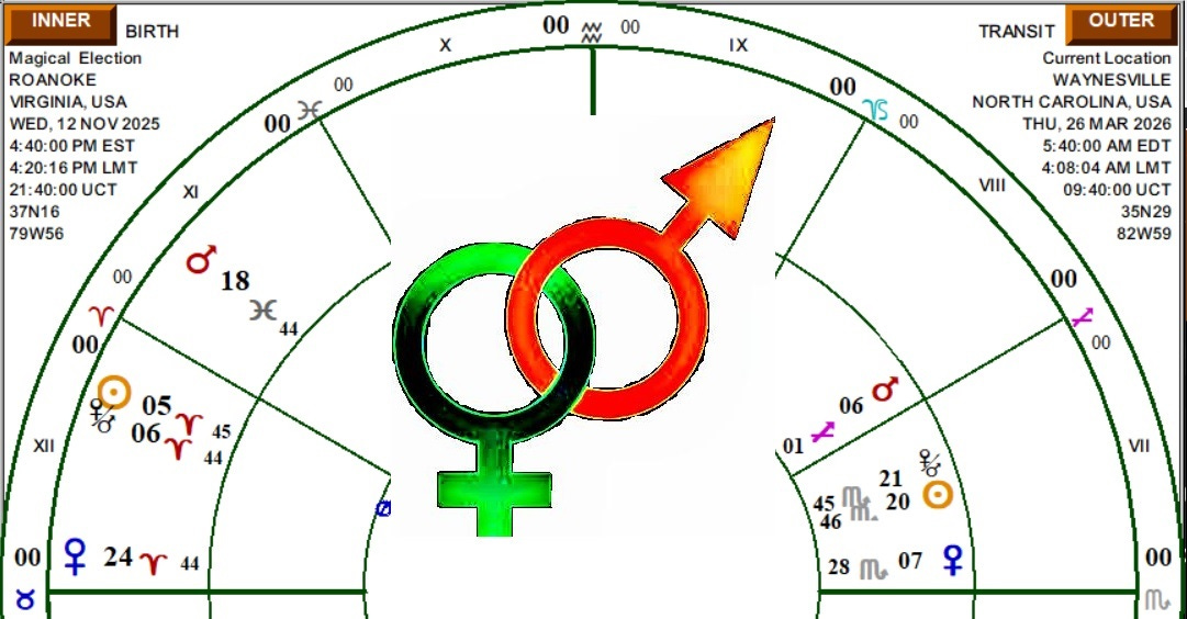 Rather than a one-off event, this Venus-Mars is a slowly unfolding story. The Sun is at the mid-point (within one degree) of this pair for over 4 months! From the time they disappear in November (Nigredo), through their conjunction in January (Albedo), until they re-appear in March (Rubedo).