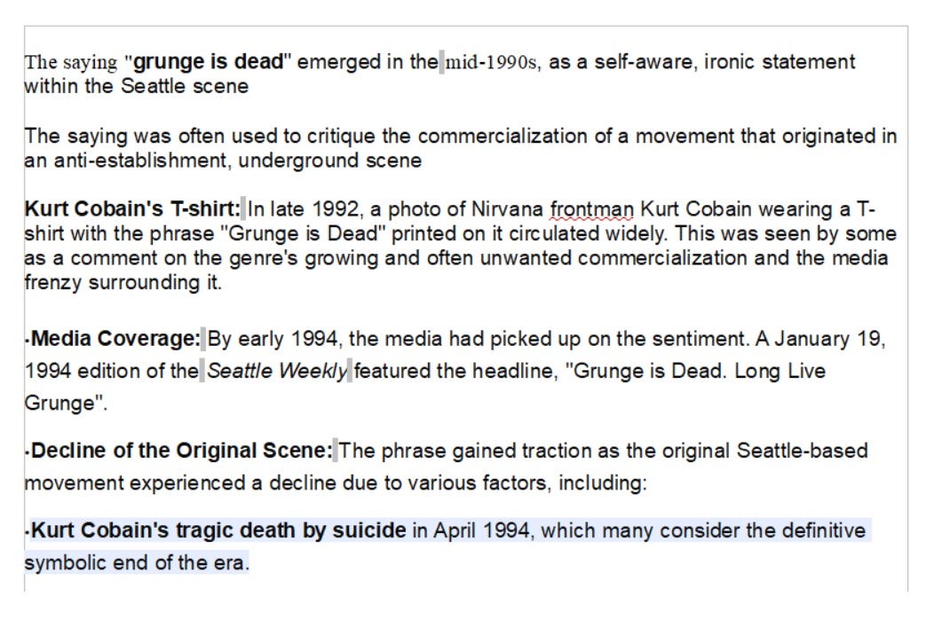 The most significant experience of that year for me was the death of Kurt Cobain. It’s one of those events that frames things for lots of people. However, it wasn’t only Kurt that died. We also had the Death of Grunge.
